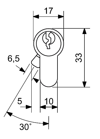 Wkładka bębenkowa 6-pinowa bezpieczeństwa z przelotowym złączem "BSZ", zabezpieczenie przed przewierceniem, uderzeniami i struganiem (nowy, bezpieczniejszy profil wkładki) - 30/35.BSZ