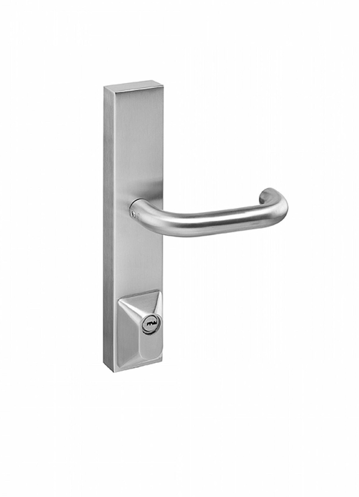Klamka antypaniczna IN.20.950 z szyldem IN.20.950 wykonana jest z wysokiej jakości stali nierdzewnej z wykończeniem powierzchni i pasuje do okuć antypanicznych IN.20.951. Klamka posiada zintegrowaną półwkładkę cylindryczną i nie przechodzi przez zamek wpuszczany.