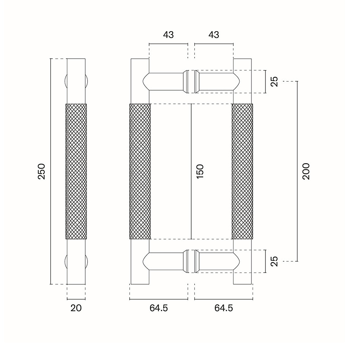 Klamka MP SH 1770 - para (CUM PVD - Miedziany mat PVD) - Długość: 250 mm200 mmØ 20 mm