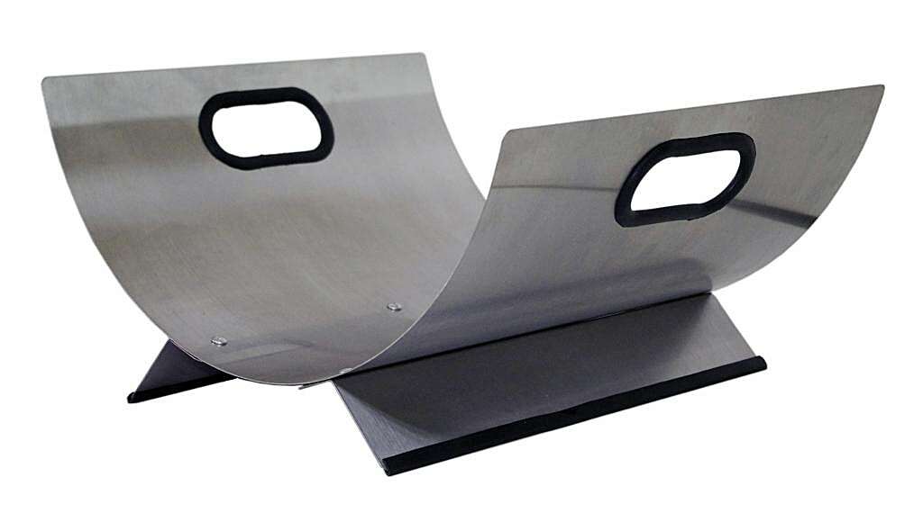 Wysokiej jakości kosz na drewno ze stali nierdzewnej z plastikową obręczą i stojakiem.