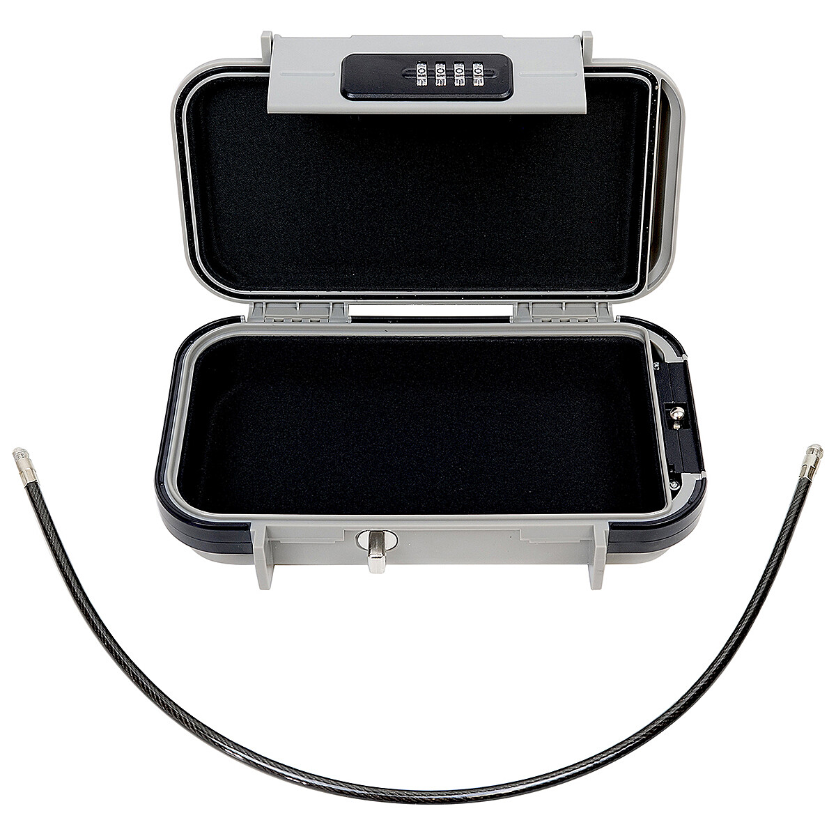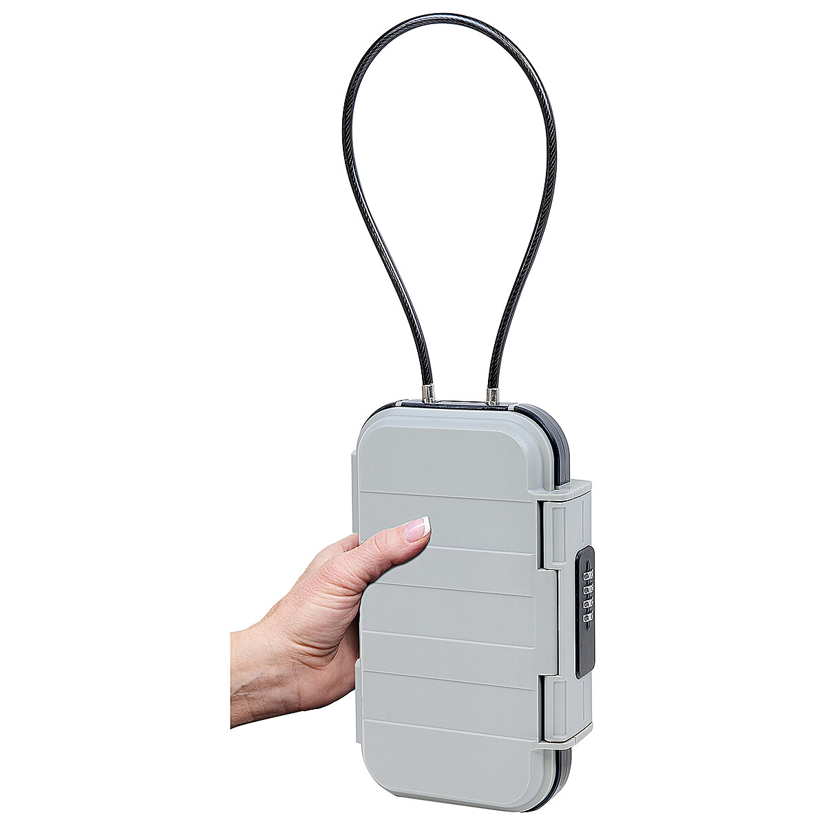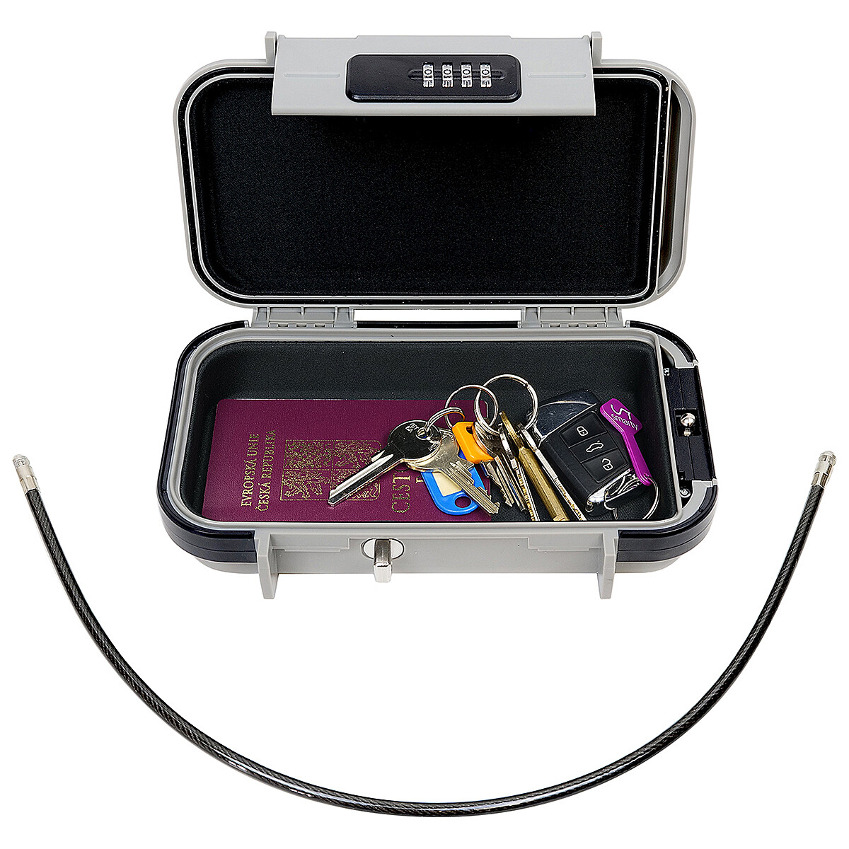 Mobilny, wodoodporny sejf (depozyt) wykonany z utwardzonego tworzywa sztucznego do przechowywania kluczy, pieniędzy i dowodów osobistych