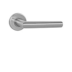 Klamka rozetowa do drzwi wewnętrznych z okrągłą rozetą, wykonana z wysokiej jakości stali nierdzewnej zwanej stalą nierdzewną i poddanej obróbce powierzchniowej. Rozeta ma średnicę 54 mm i grubość 9 mm. Jest trwały i odporny na zużycie. Armatura jest testowana zgodnie z normą ČSN EN 1906:2012 przez 200 000 cykli.