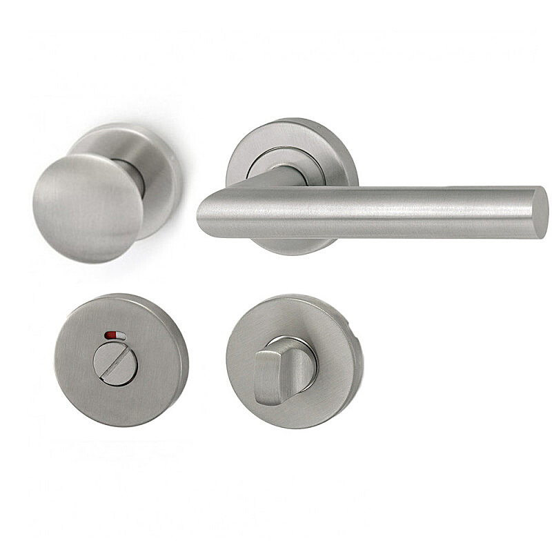 Okucie drzwiowe dostępne jest w wersji na klucz zwykły (BB), na wkładkę bębenkową (PZ) lub z blokadą WC ze wskaźnikiem zamknięcia do łazienki lub toalety.