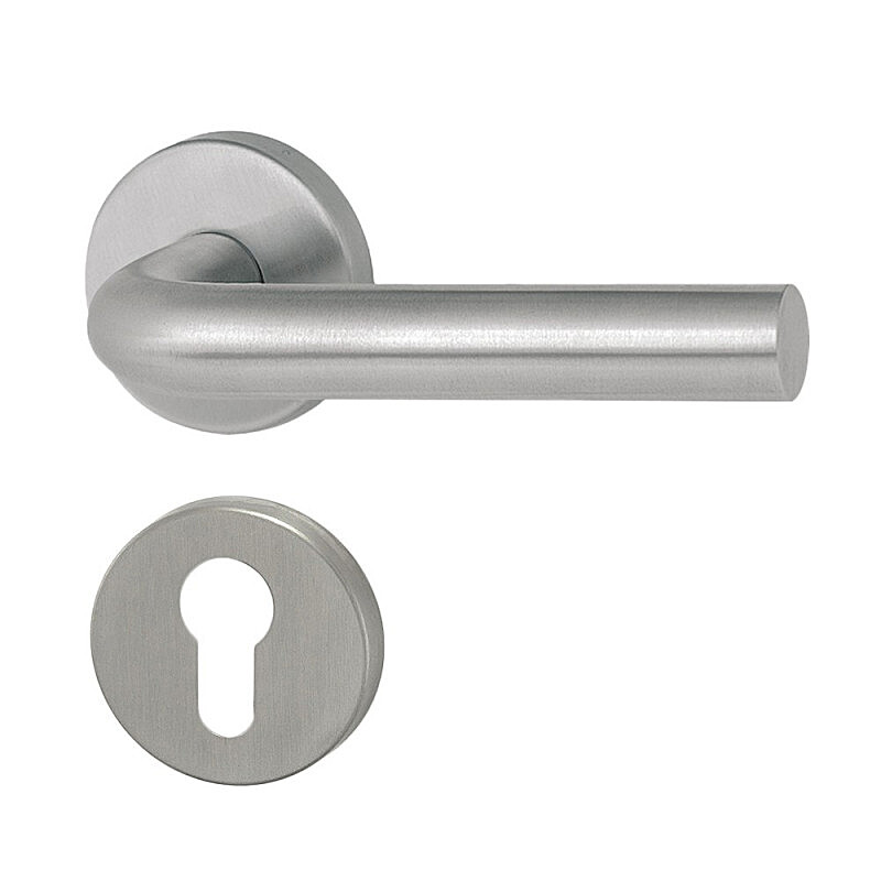 Klamka MT 01 z rozetą okrągłą, kwadratową lub owalną przeznaczona jest do montażu wewnątrz i na zewnątrz, wykonana ze stali nierdzewnej DIN 1.4301 o satynowo-matowej powierzchni, nowoczesnym i ponadczasowym wzornictwie, higienicznie bezpieczna i trwała.