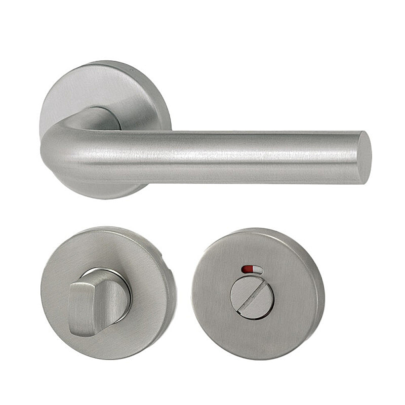 Okucie drzwiowe dostępne jest w wersji na klucz zwykły (BB), na wkładkę bębenkową (PZ) lub z blokadą WC ze wskaźnikiem zamknięcia do łazienki lub toalety.