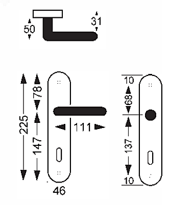 | Rodzaj otworu - wariant | Klucz do toalety, Otwór na wkładkę cylindrową PZ, Otwór na zwykły klucz BB |