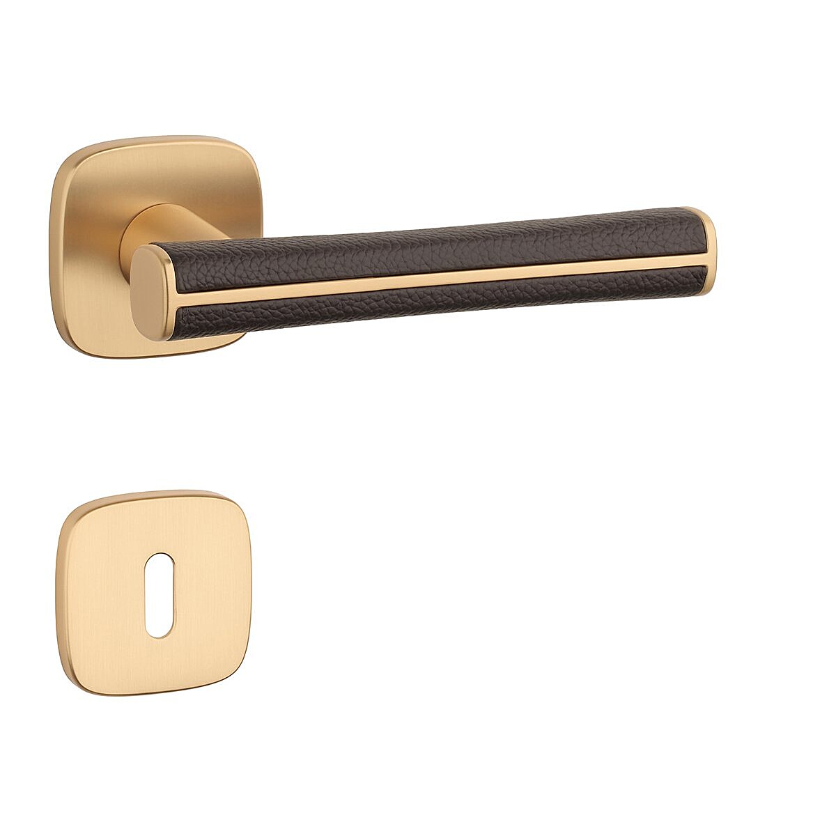 Okucia drzwiowe MP AS - DAVIDIA - QR 7S (OLS - Mosiądz szczotkowany / skóra brązowa)