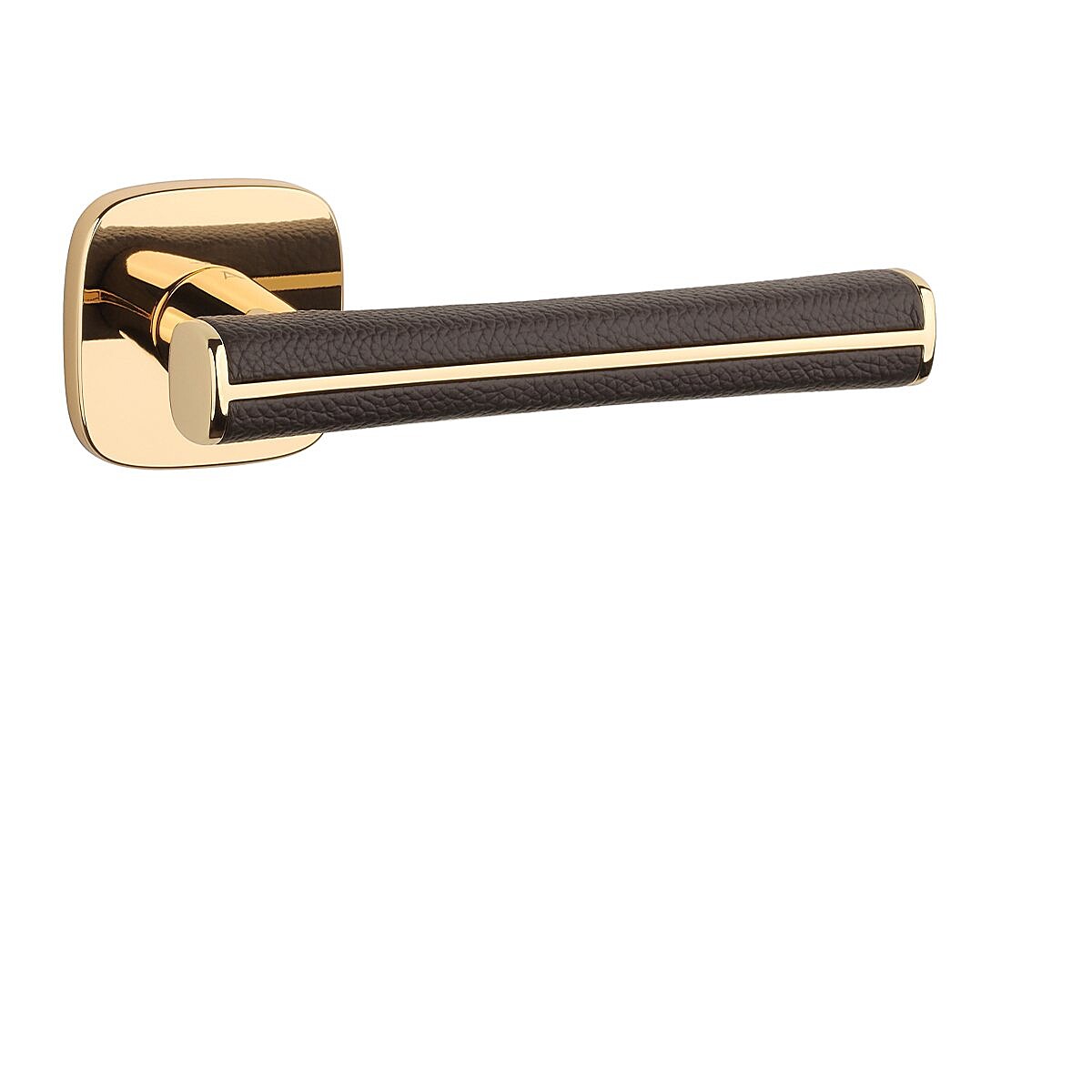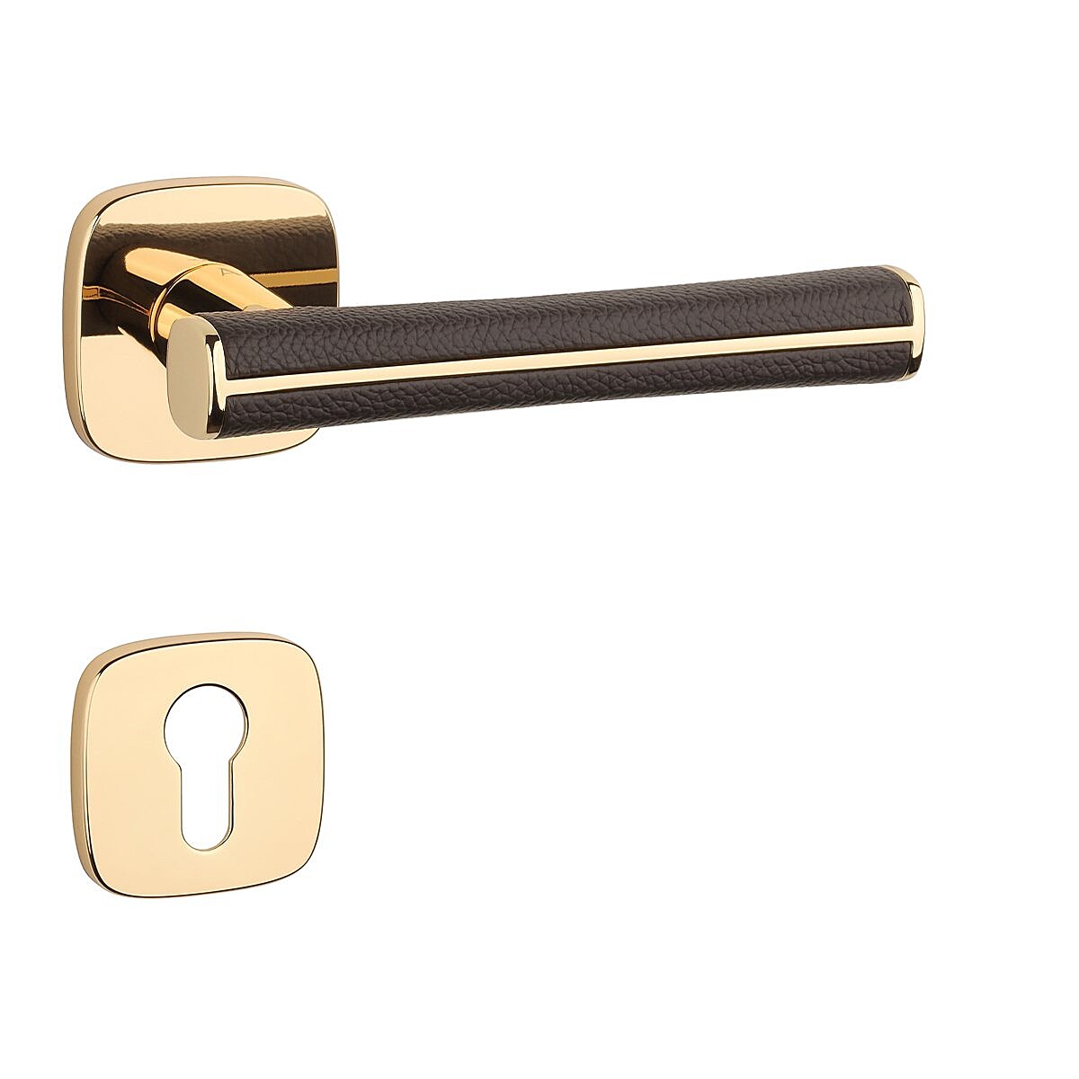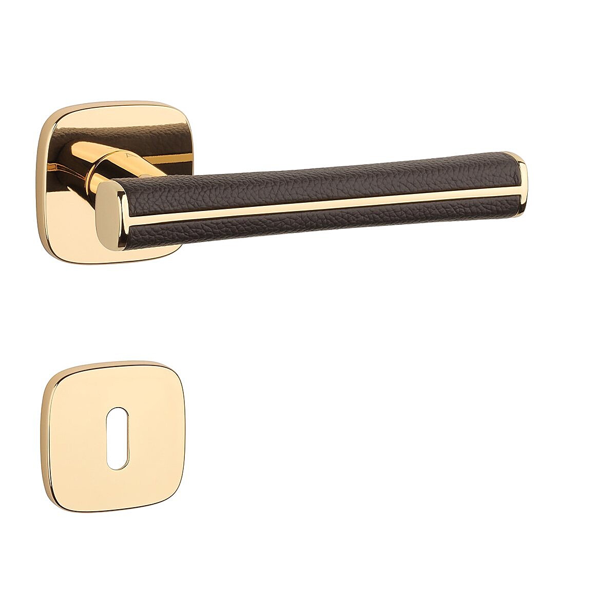 Okucia drzwiowe MP AS - DAVIDIA - QR 7S (OLV - Mosiądz lakierowany polerowany / skóra brązowa)