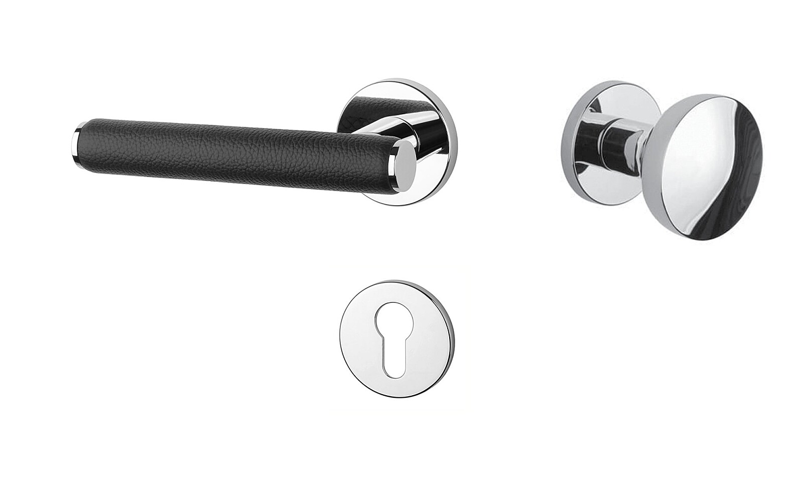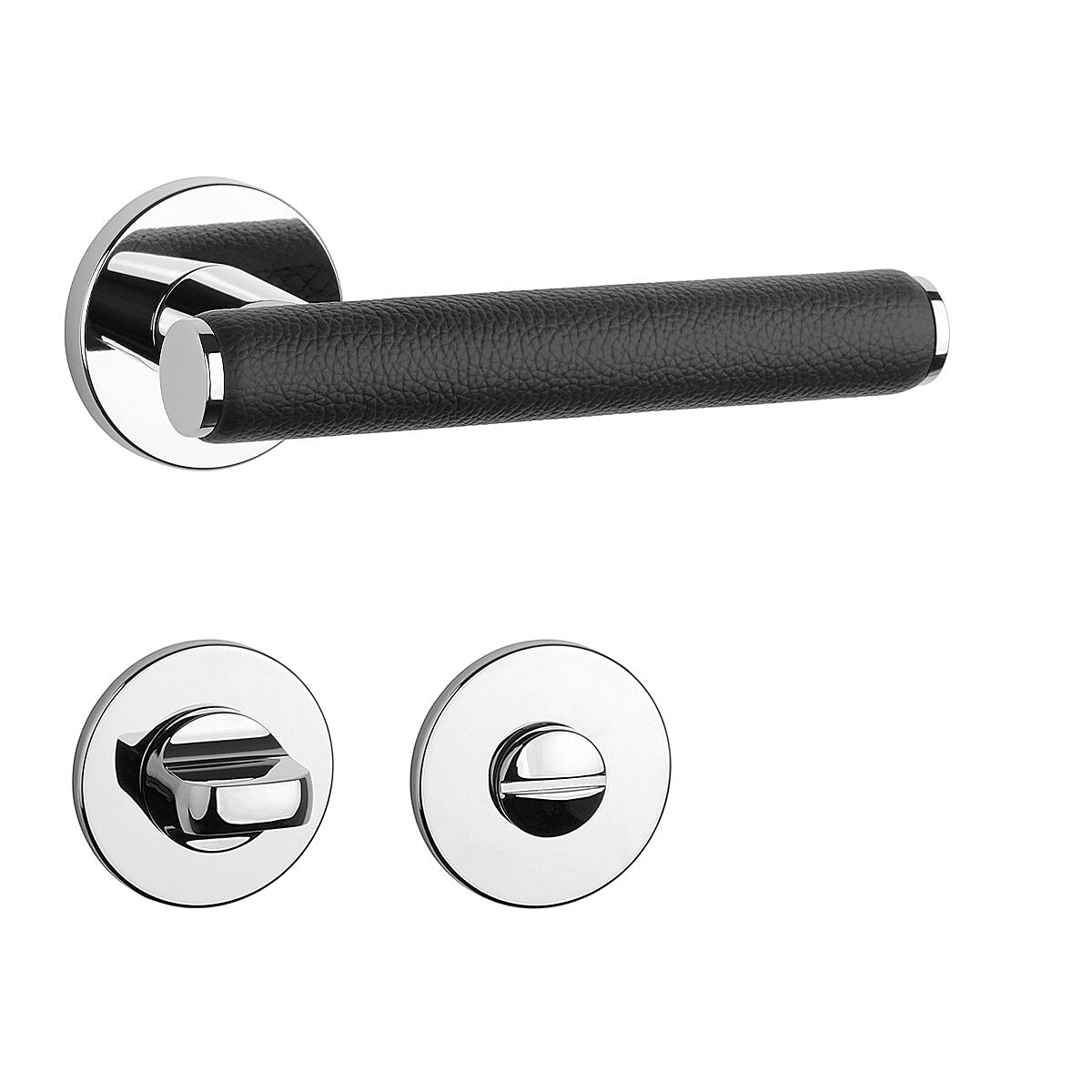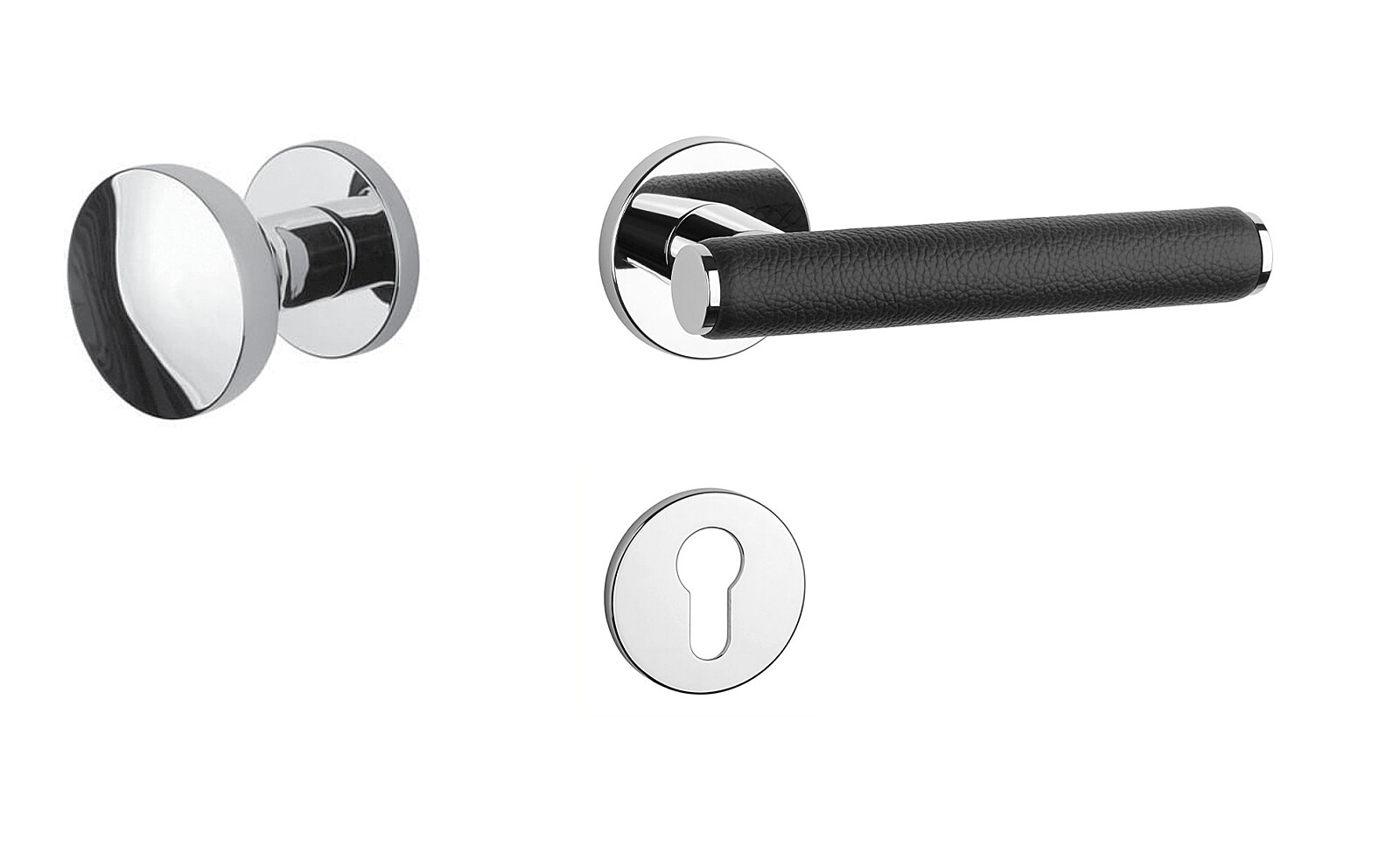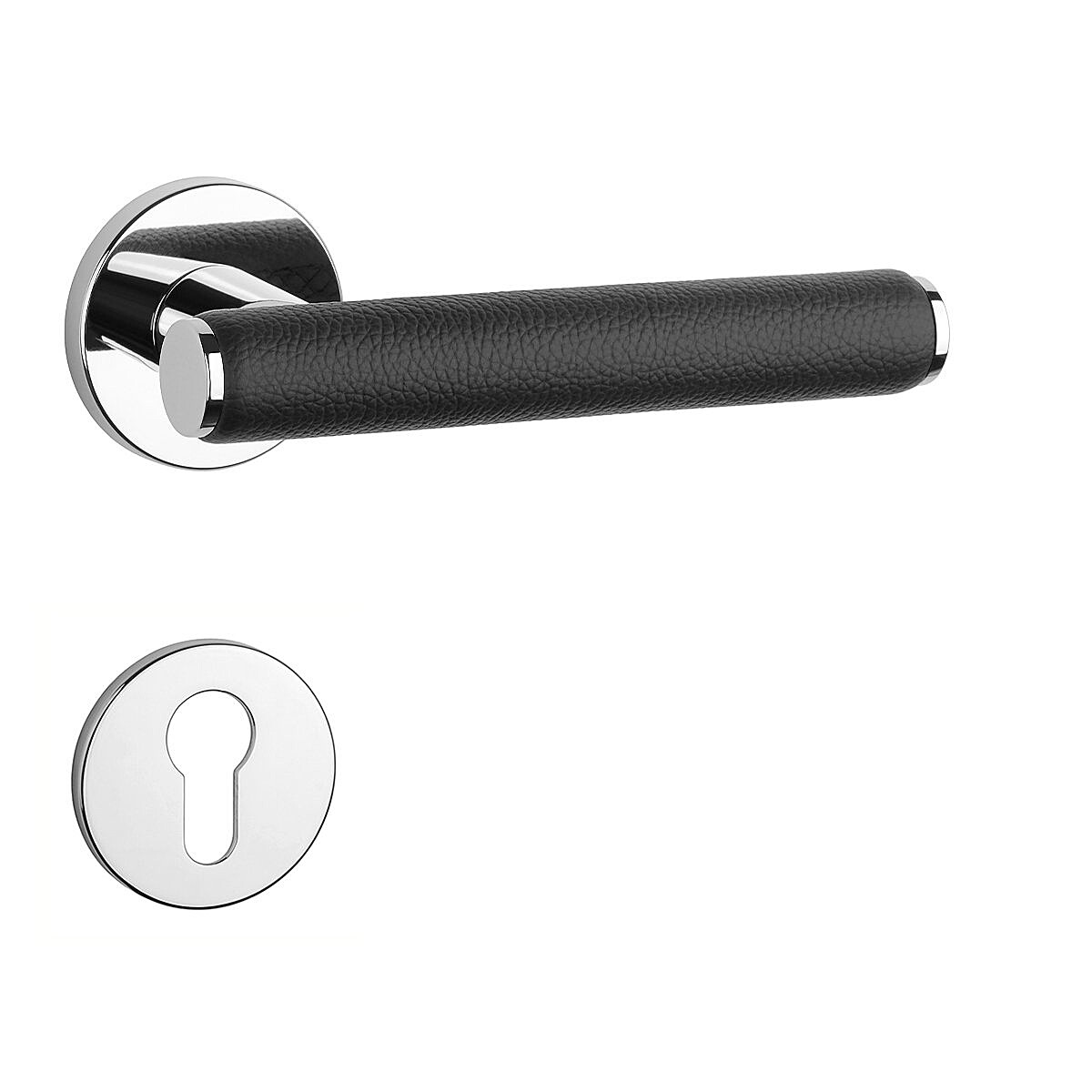 Okucia drzwiowe MP AS - EGERIA - R 7S (OC - Chrom błyszczący / skóra czarna)