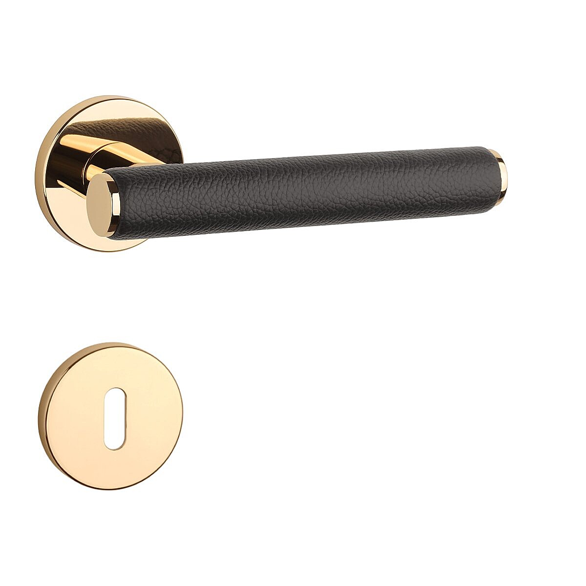 Okucia drzwiowe MP AS - EGERIA - R 7S (OLV - Mosiądz lakierowany polerowany / skóra brązowa)