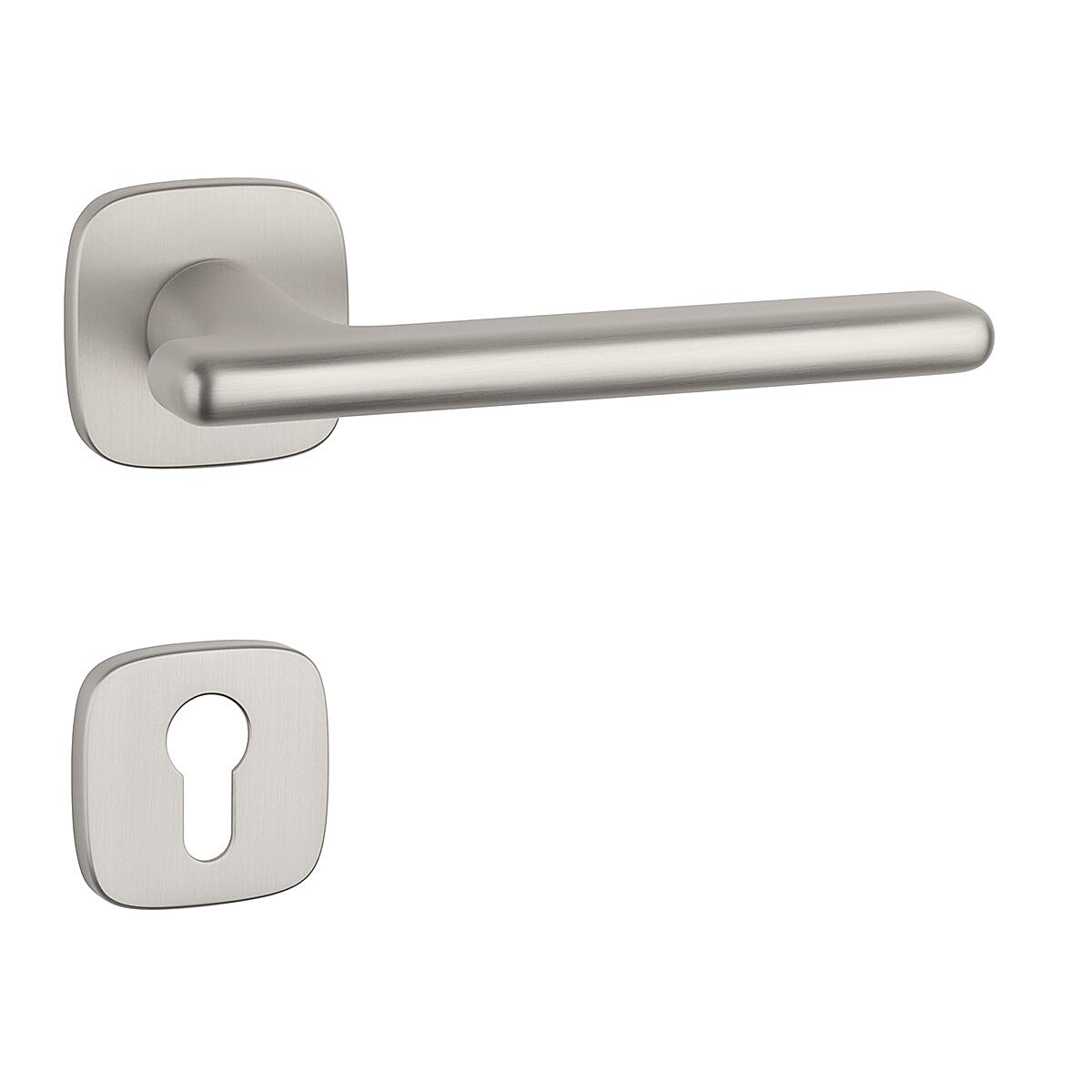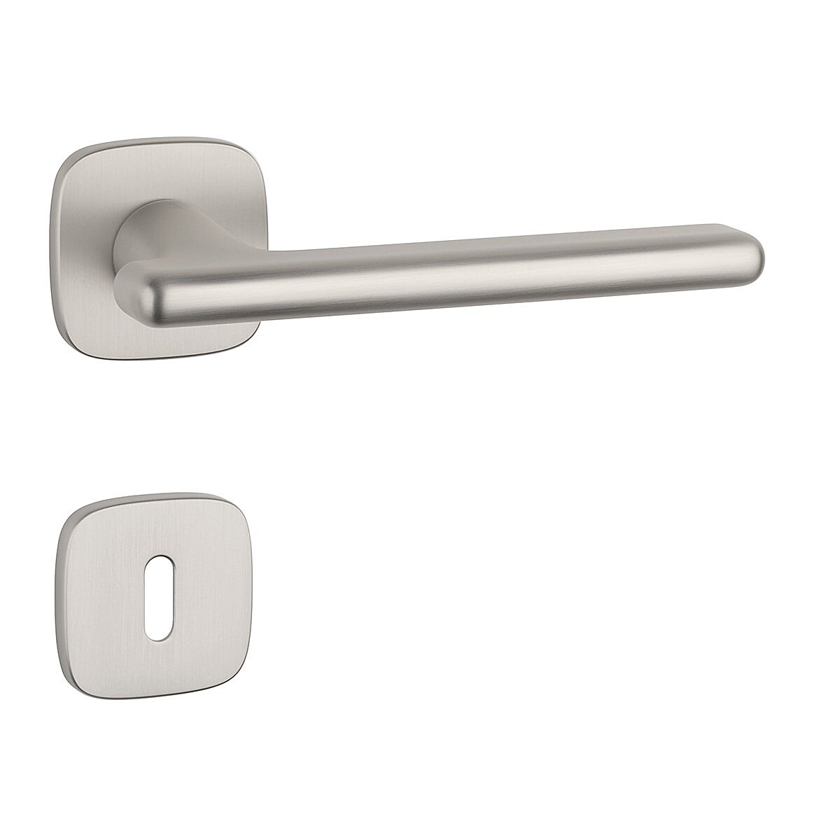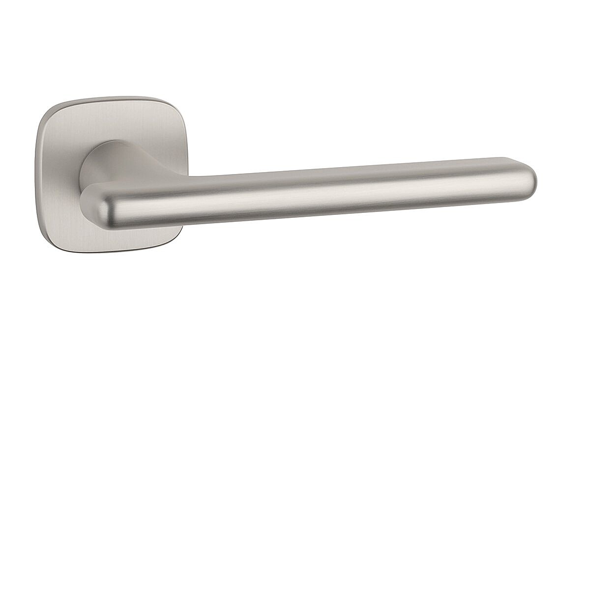 Klamka rozetowa MARANTA do drzwi wewnętrznych z kwadratową, zaokrągloną rozetą wykonana jest z wysokogatunkowego materiału - znalu i posiada wykończenie powierzchni.