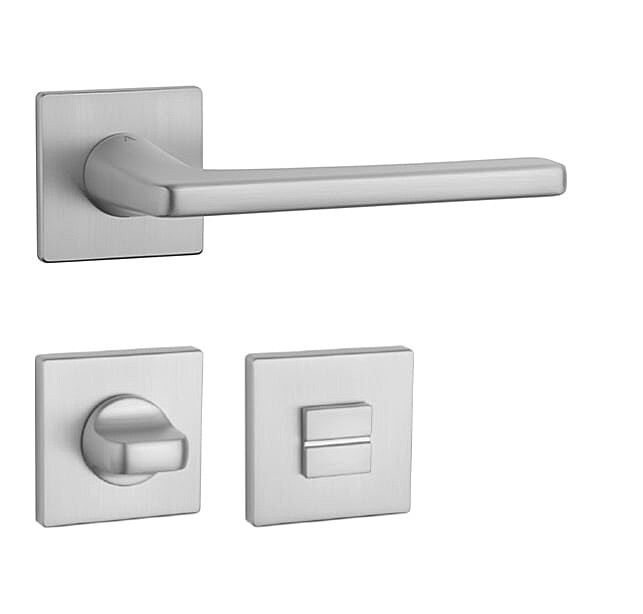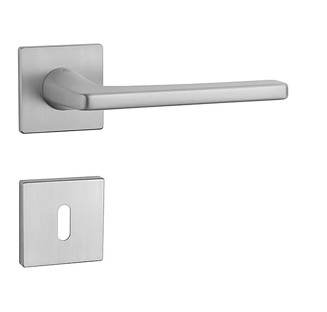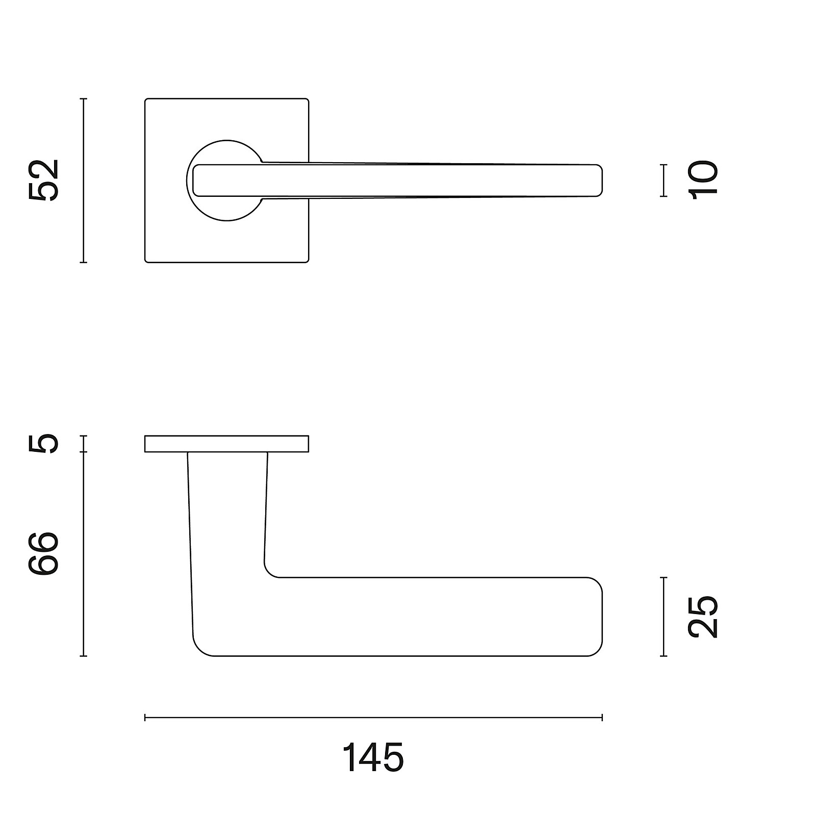 Klamka rozetowa do drzwi wewnętrznych z kwadratową rozetą wykonana jest z wysokiej jakości materiału – znalu i ma obróbkę powierzchniową. Rozeta ma wymiary 52x52 mm i grubość zaledwie 5 mm. Minimalistyczny design rozety i wysoka stabilność klamki na drzwiach dają subtelny efekt, pozostawiając przestrzeń na wyróżnienie się designu klamki.