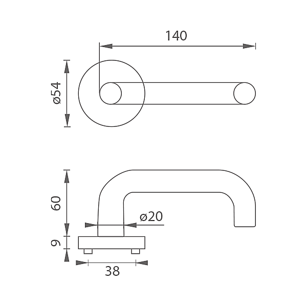 Klamka rozetowa do drzwi wewnętrznych z okrągłą rozetą, wykonana z wysokiej jakości stali nierdzewnej, tzw. stali nierdzewnej, z obróbką powierzchniową. Rozeta ma średnicę 54 mm i grubość 9 mm. Jest trwała i odporna na zużycie. Okucie jest testowane zgodnie z normą ČSN EN 1906:2012 na 200 000 cykli.