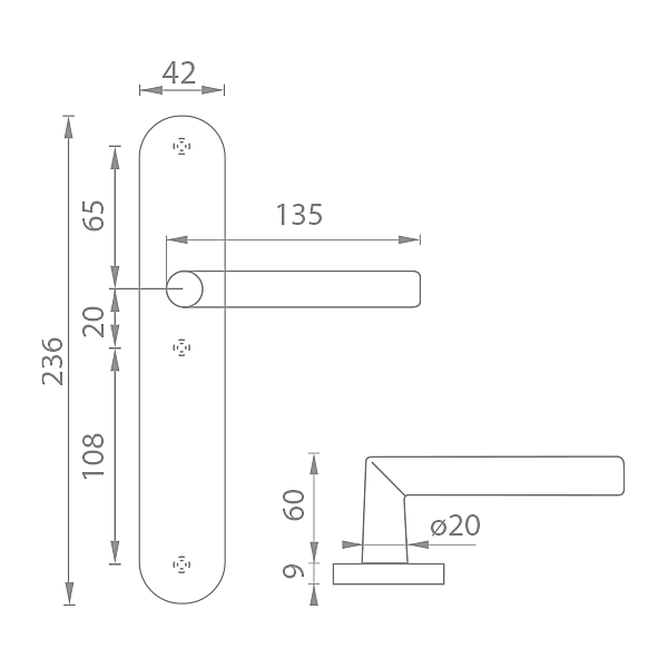 Klamka drzwi wewnętrznych z długą owalną tarczą wykonana jest z wysokiej jakości stali nierdzewnej, zwanej stalą nierdzewną, i jest poddana obróbce powierzchniowej. Długa owalna tarcza ma wymiary 42 mm x 236 mm.