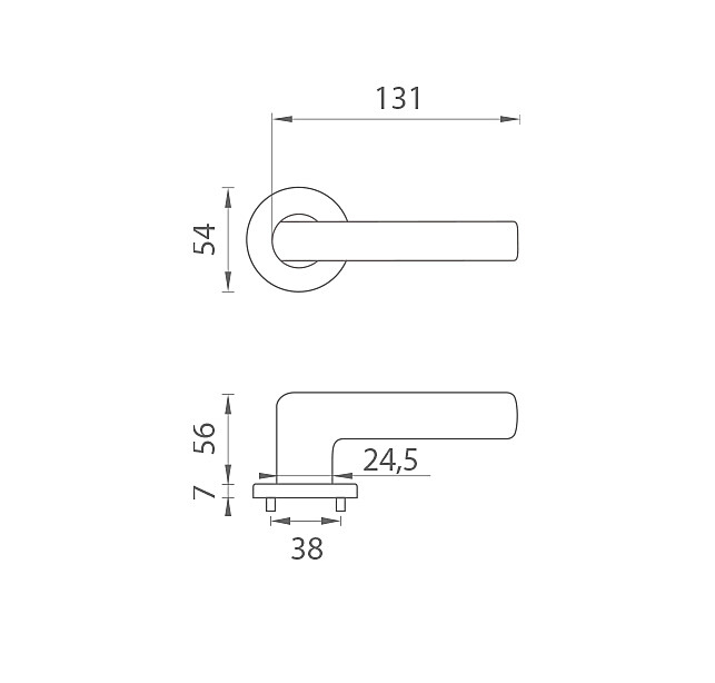 Klamka rozetowa do drzwi wewnętrznych z okrągłą rozetą wykonana jest z wysokiej jakości materiału – znalu i ma obróbkę powierzchniową. Rozeta ma średnicę 54 mm i grubość zaledwie 7 mm. Minimalistyczny design rozety i wysoka stabilność klamki na drzwiach tworzą subtelny efekt, pozostawiając przestrzeń dla wyrazistości samego designu klamki.