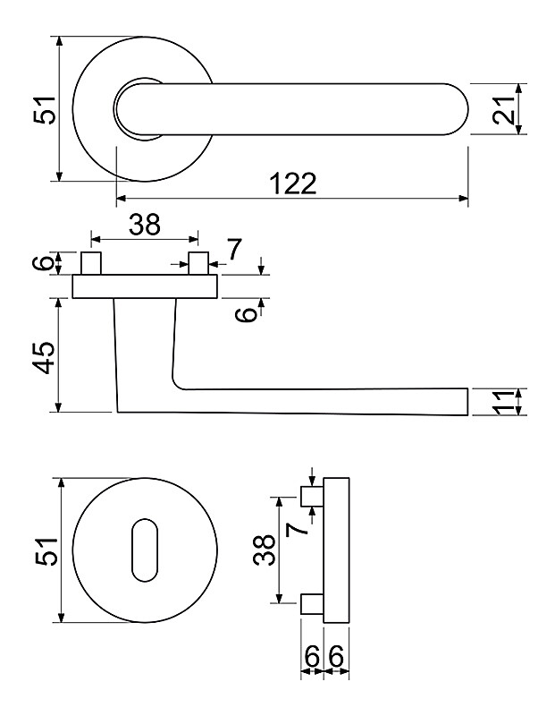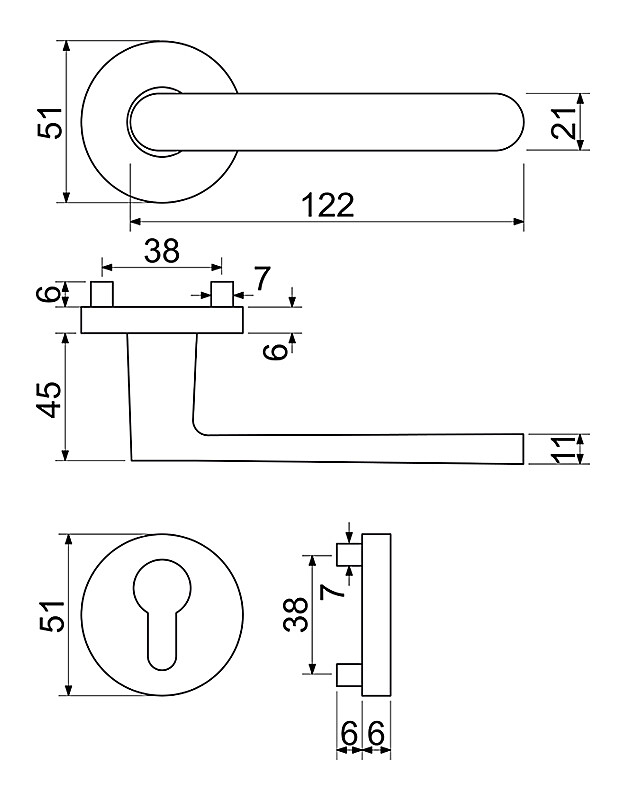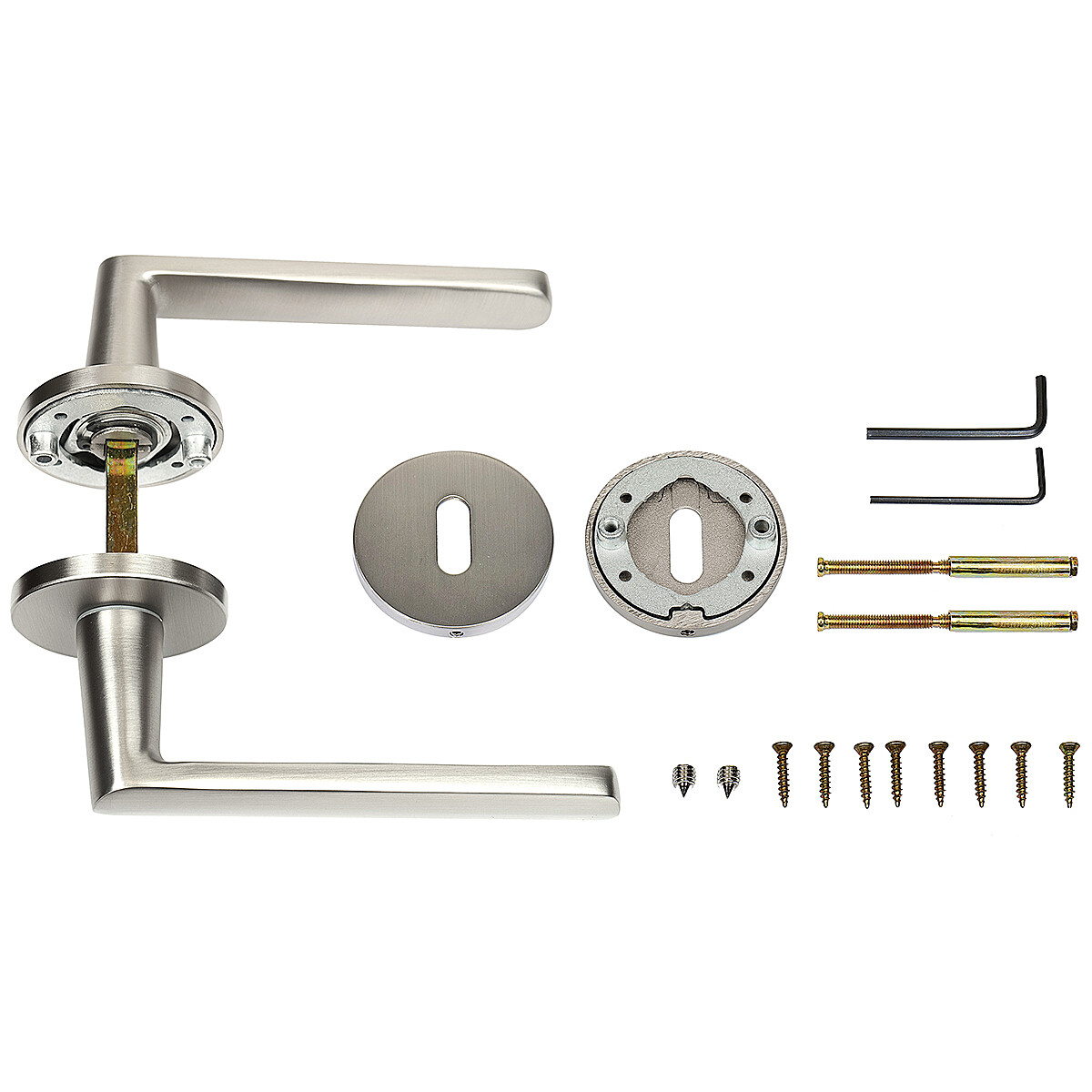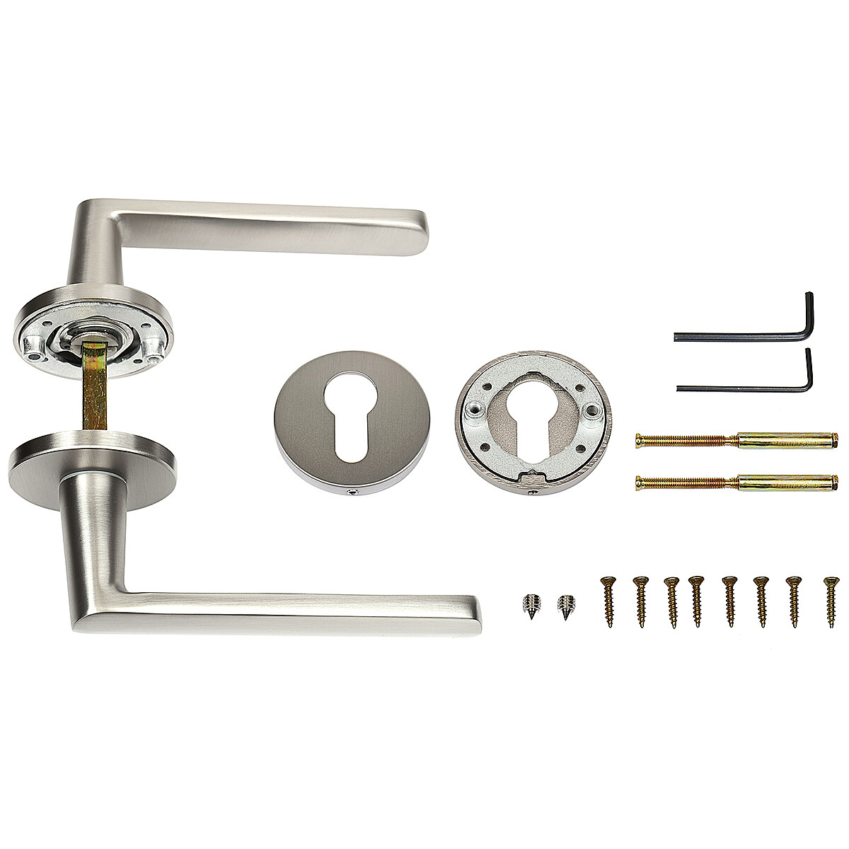 Okucia aluminiowe na rozetkach okrągłych ze sprężyną powrotną klamki