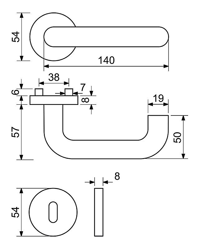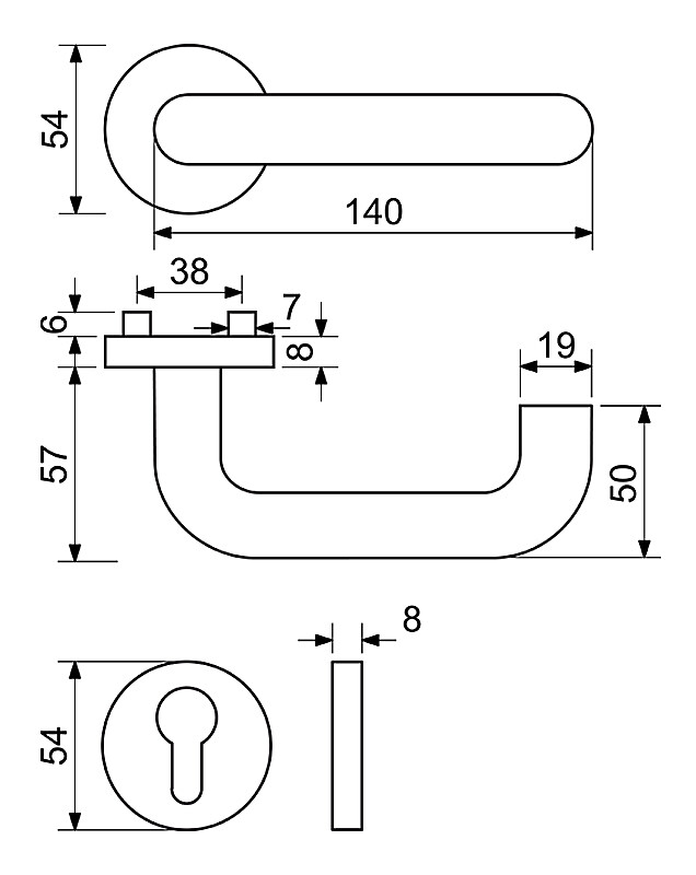 Okucia ze stali nierdzewnej na okrągłych rozetkach ze sprężyną powrotną klamki
