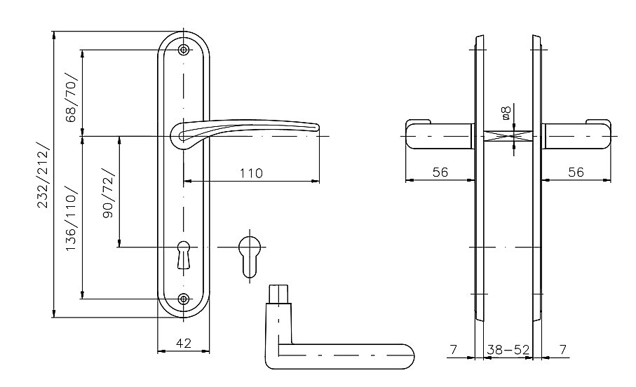 | Rodzaj otworu - wariant | Klucz do toalety, Otwór na wkładkę cylindrową PZ, Otwór na zwykły klucz BB |