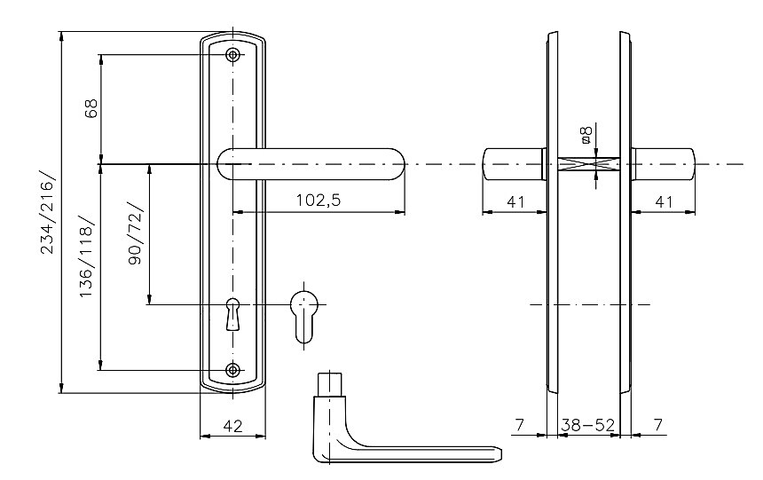 Grubość drzwi: 38-52 mm
