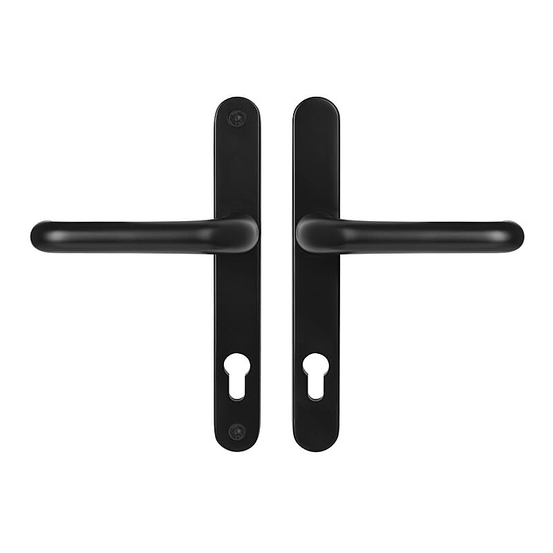 Okucie zabezpieczające z wąską szyldem MPK SECURO A04 - USO COSLAN charakteryzuje się wysoką trwałością i stanowi idealny wybór do drzwi wejściowych, profilowych i frontowych, w tym drzwi o podwyższonej wilgotności.