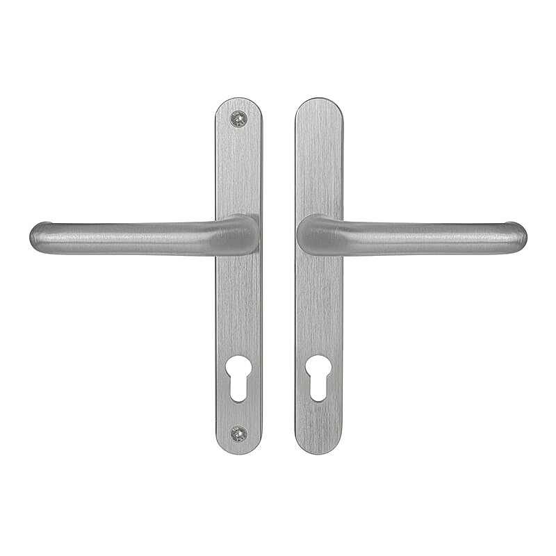 Okucie zabezpieczające z wąską szyldem MPK SECURO A04 - USO COSLAN charakteryzuje się wysoką trwałością i stanowi idealny wybór do drzwi wejściowych, profilowych i frontowych, w tym drzwi o podwyższonej wilgotności.