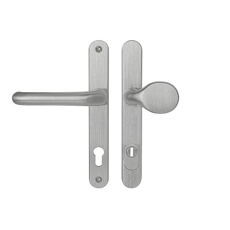 Okucie zabezpieczające z wąską szyldem MPK SECURO A04 PLUS USO M1 COSLAN charakteryzuje się wysoką trwałością i stanowi idealny wybór do drzwi wejściowych, profilowych i frontowych, w tym drzwi narażonych na zwiększoną wilgotność.