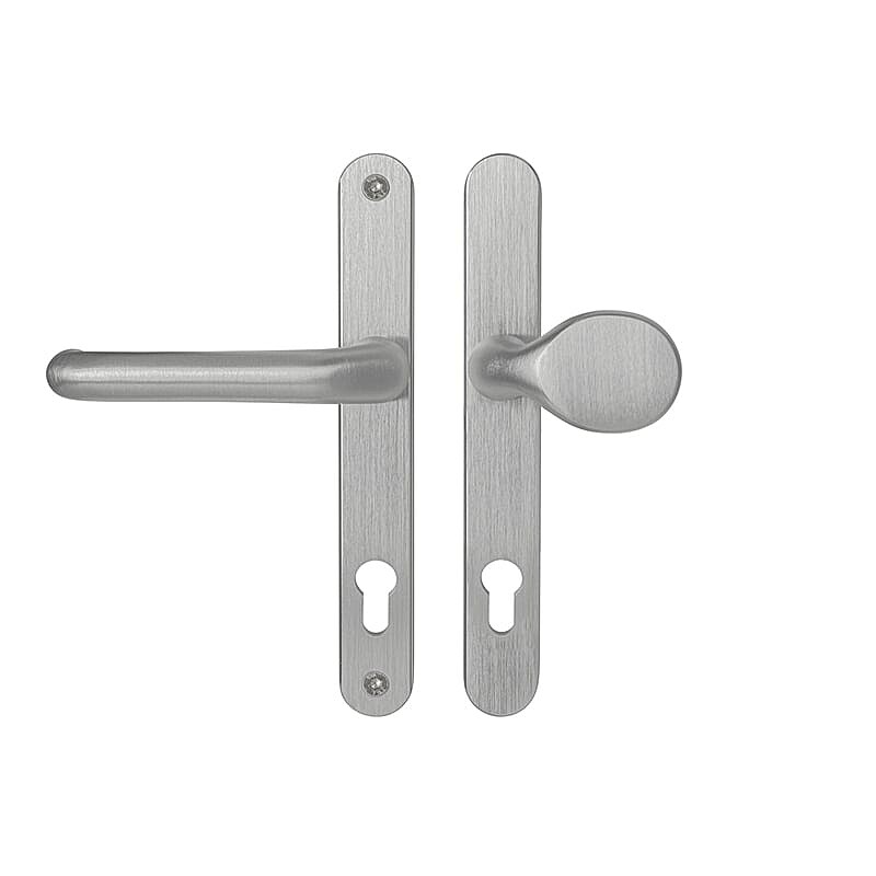 Okucie zabezpieczające z wąską szyldem MPK SECURO A04 - USO M1 COSLAN charakteryzuje się wysoką trwałością i stanowi idealny wybór do drzwi wejściowych, profilowych i frontowych, w tym drzwi narażonych na zwiększoną wilgotność.