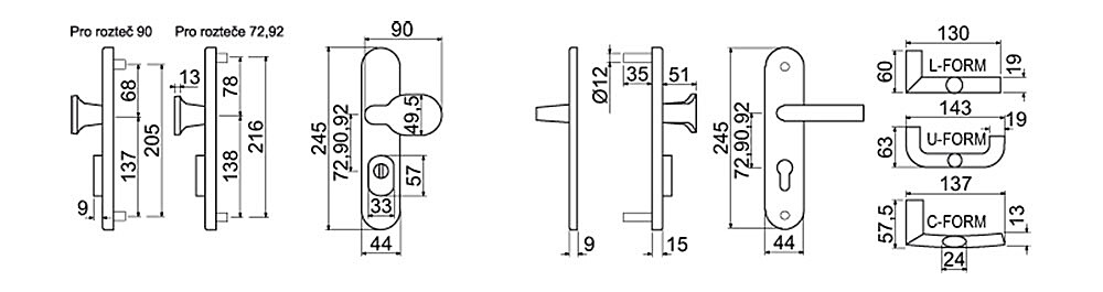 | Rozstaw | 72 mm, 90 mm, 92 mm |