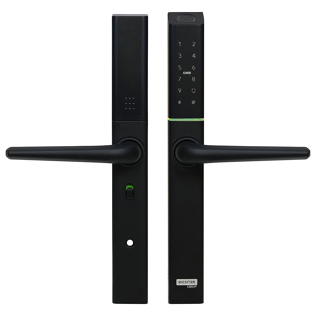- Możliwość ustawienia „okien czasowych” dla wejścia za pomocą metod uwierzytelniania - odcisk palca, karta IC lub kod numeryczny (konkretna godzina, dzień tygodnia lub data) oraz trybu „prywatności” (na wewnętrznej osłonie klamki znajduje się blokada, którą może odblokować od zewnątrz tylko administrator).