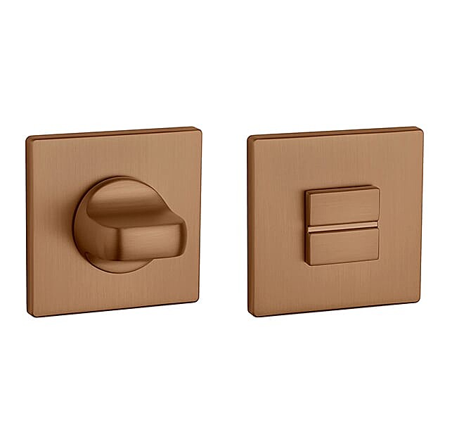 Rozeta ma wymiary 52x52 mm, grubość 5 mm i otwór owalny na klucz wewnętrzny (BB), otwór na wkładkę bębenkową (PZ), zestaw WC z wbudowanym kluczem.