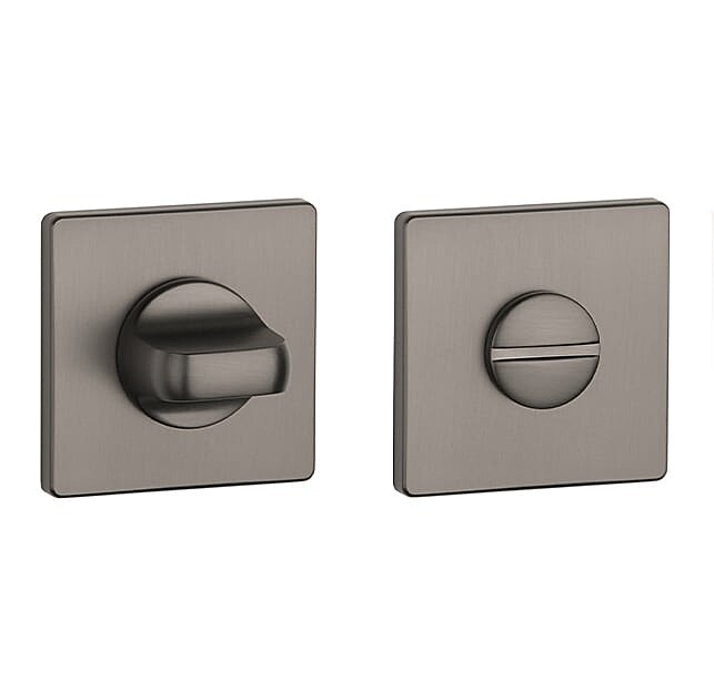 Rozeta ma wymiary 52x52 mm, grubość 5 mm i otwór owalny na klucz wewnętrzny (BB), otwór na wkładkę bębenkową (PZ), zestaw WC z wbudowanym kluczem.