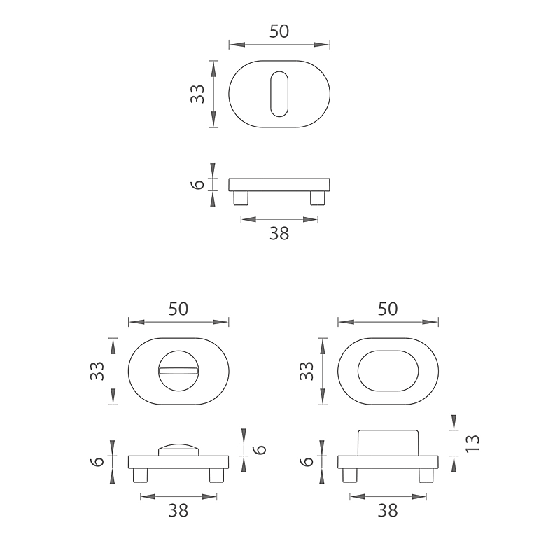 Wymiary rozety: 50 x 33 mm