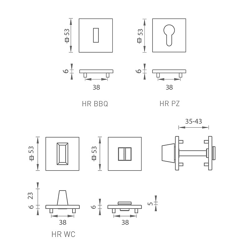 Wymiary rozety: 53 x 53 mm
