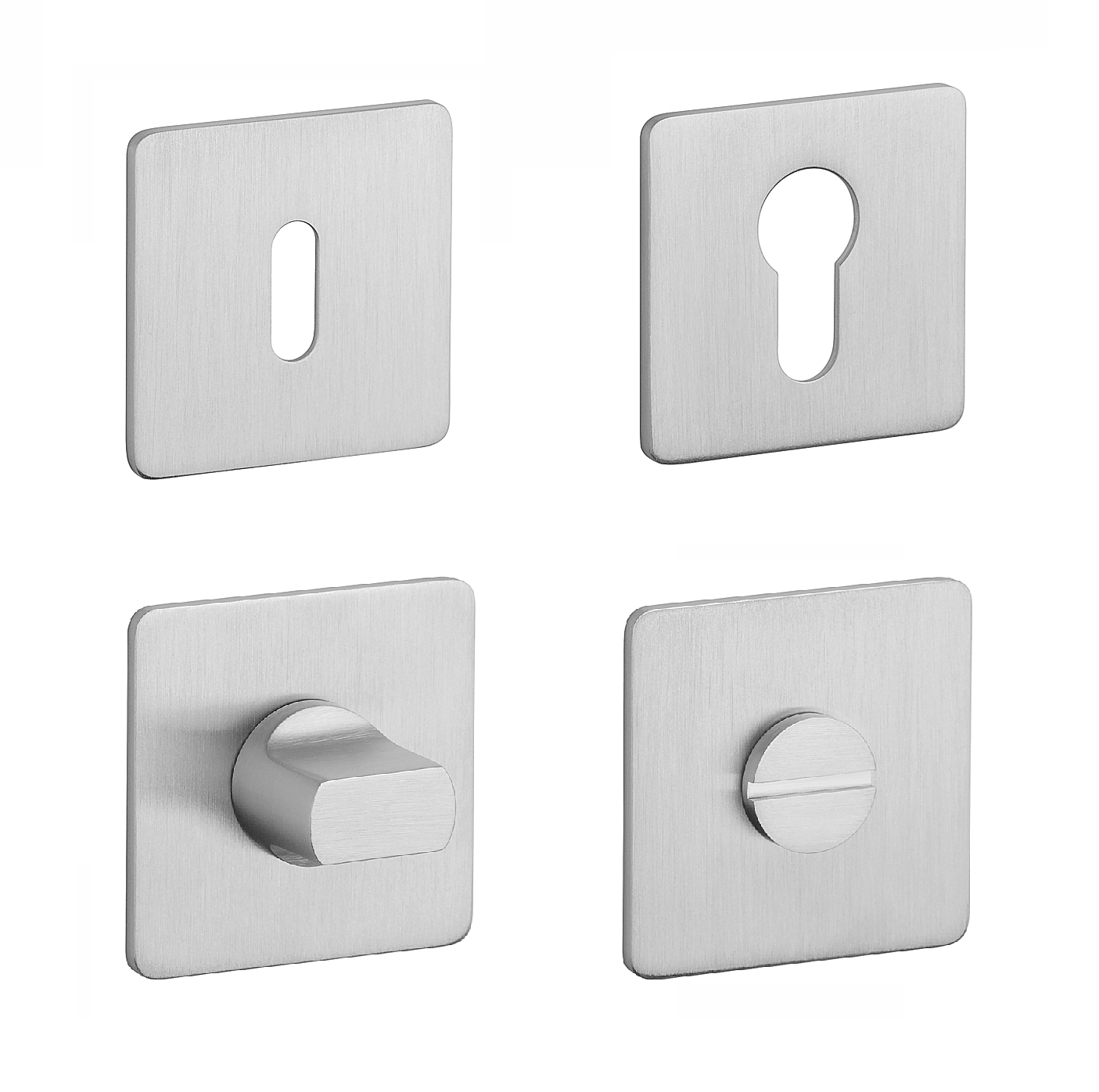 Elegancka kwadratowa rozeta o minimalistycznym wzornictwie wykonana jest z najwyższej jakości stali nierdzewnej o wysokiej jakości wykończeniu powierzchni, co gwarantuje długą żywotność i nowoczesny wygląd.