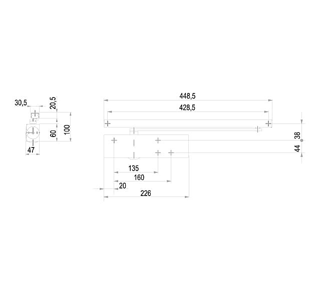 • Do cięższych drzwi wewnętrznych/zewnętrznych z drewna/szkła (z podkładką montażową do drzwi szklanych); stali/aluminium/tworzywa sztucznego