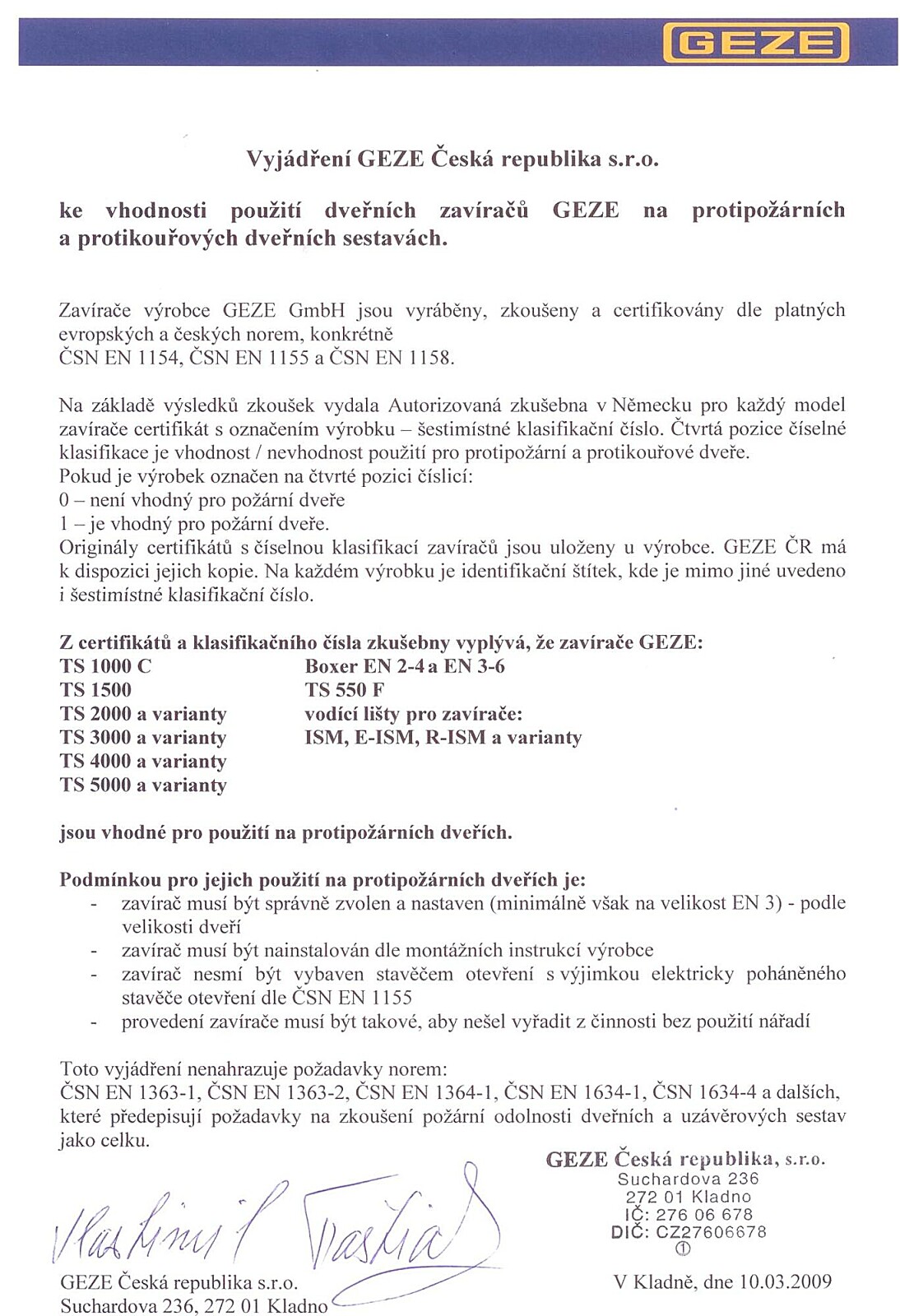 Siła zamykania 1 wg ČSN EN 1154 - dotyczy drzwi o szerokości do 750 mm, nie wolno stosować w drzwiach przeciwpożarowych