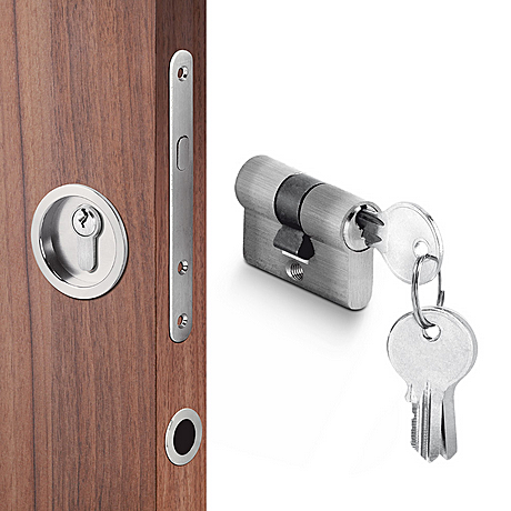 Wkładka konstrukcyjna niklowa, w komplecie 3 klucze, w rozmiarze do drzwi przesuwnych.