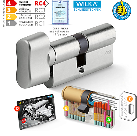 Wkładka cylindryczna z gałką ACT WILKA RC4, profil zabezpieczony (nikiel)