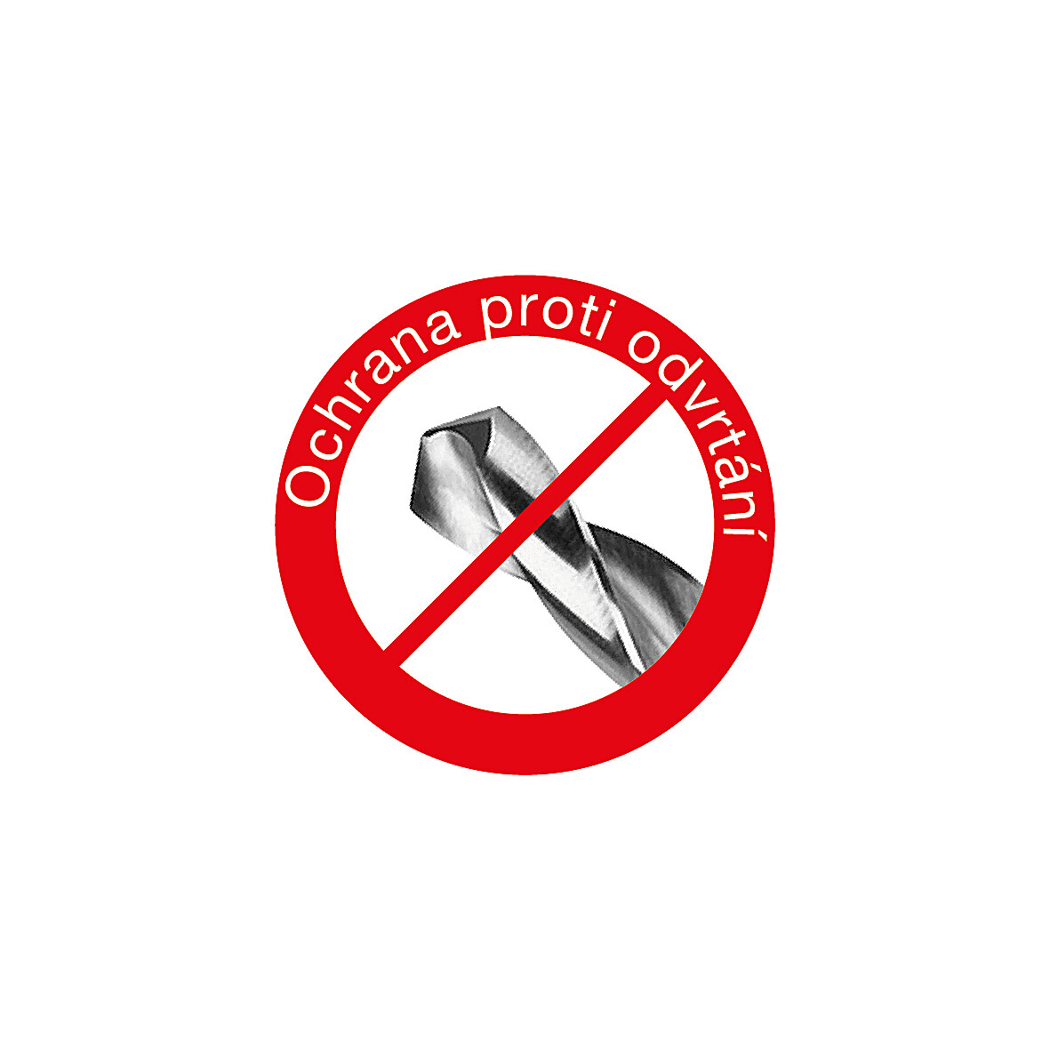 - Zabezpieczenie przed przewierceniem z 6 hartowanymi elementami stalowymi. Składa się z 5 trzpieni i 1 bębenka.