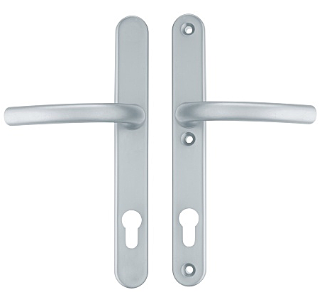 WYPRZEDAŻ Okucia ochronne COBRA SLIM (F1 - anodowane na kolor srebrny) - Klamka/klamka PZ - rozstaw 90 mm