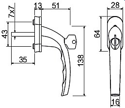 | Rodzaje okuć – wariant | OK, klamka okienna |