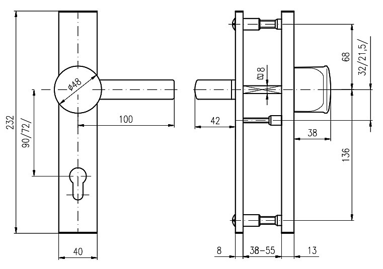 Grubość drzwi: 67-72 mm