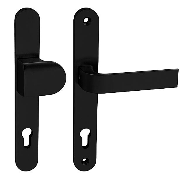 Okucia zabezpieczające montuje się za pomocą długich śrub od wewnątrz. Od zewnątrz może być kula, rączka lub rękojeść z osłoną zabezpieczającą przed przewierceniem i złamaniem osłony. Niektóre typy posiadają nasadkę ochronną, która zapobiega niepożądanemu manipulowaniu wkładem.
