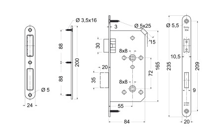 Zamek magnetyczny wpuszczany z klamką WC RICHTER EN.304M.WC.72.55.20