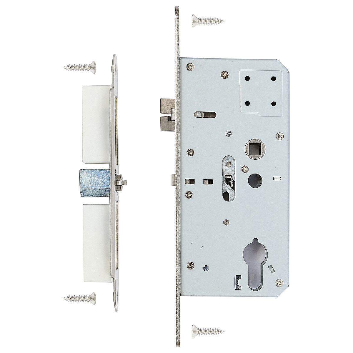 Zamek wpuszczany samoblokujący z funkcją antypaniczną "E", do okuć kulkowo-klamkowych