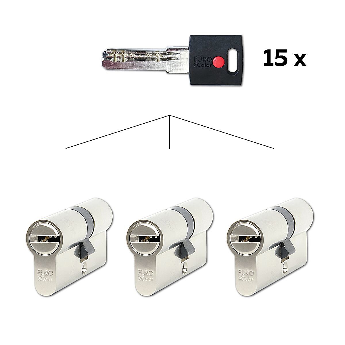 Komplet 3 szt. wkładek bębenkowych budowlanych EURO XColor 6-punktowych do zamka standardowego - "SU"